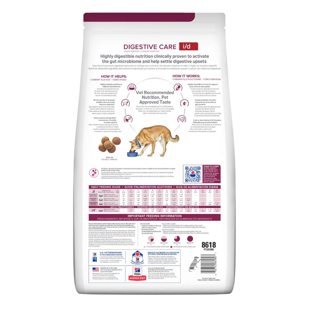 Hill’s Prescription Diet i/d es nutrición altamente digerible y de gran sabor para perros pequeños que ha demostrado clínicamente que ayuda a calmar los trastornos digestivos. Fortificado con la tecnología de ingredientes ActivBiome+ patentada de Hill’s que ha demostrado clínicamente que activa rápidamente el microbioma intestinal para respaldar la salud y el bienestar digestivos.