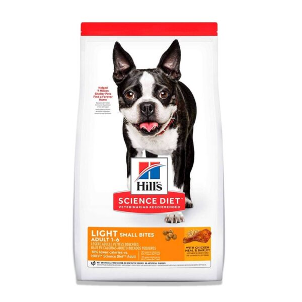 El alimento seco para perros Hill’s Science Diet Light Small Bites Adult es una nutrición precisa para perros adultos menos activos que requieren un alimento bajo en calorías para mantener un peso y un estilo de vida saludables. Delicioso sabor a pollo en un bocado pequeño para aquellos que prefieren la variedad.