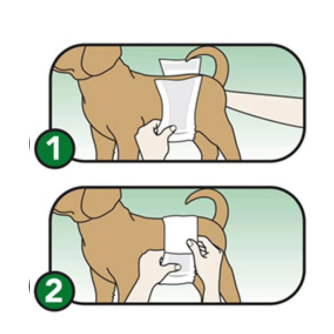 • Forma de Uso: Se envuelve a la cintura de tu mascota como un cinturón o faja.